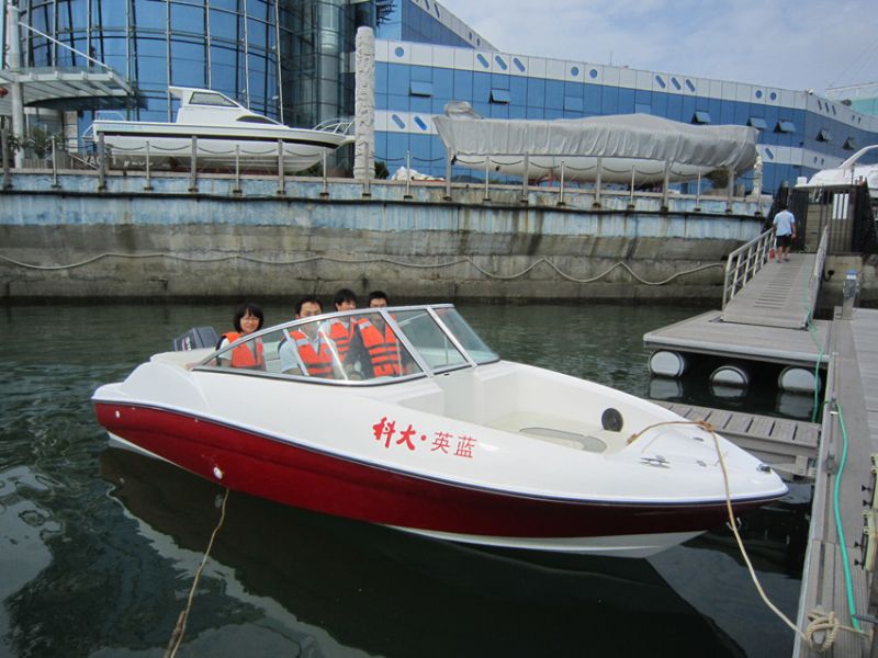 9月27日,由探花直播 英蓝船艇研究中心自主设计制造的“科大·英蓝”Y580号休闲快艇和“威尼斯人”号垂钓艇在青岛银海游艇俱乐部4号游艇码头成功试航。