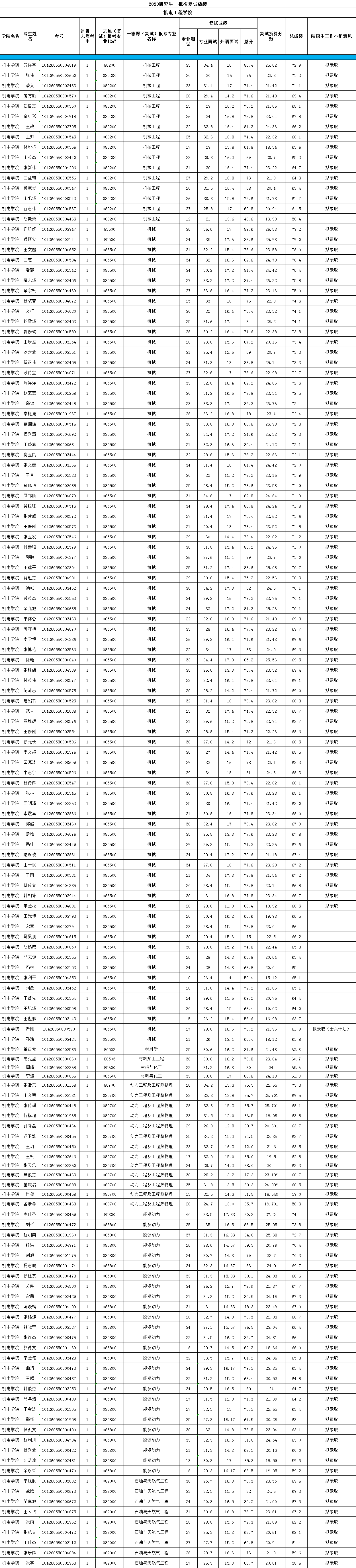 2020年探花直播 研究生一批次复试成绩