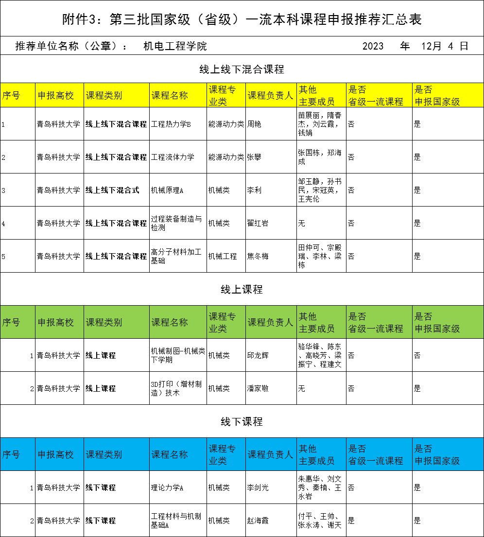 依据学校《关于开展探花直播 第三批山东省一流本科课程申报工作的预备通知》,学院组织符合条件的教师申报,共有9位教师提交材料,经院外专家评审,现拟推荐以下课程进入学校评审环节,并进行公示。公示期三天(2023年12月4日-12月6日),如有异议,请在公示期内向探花直播 教学办反映。