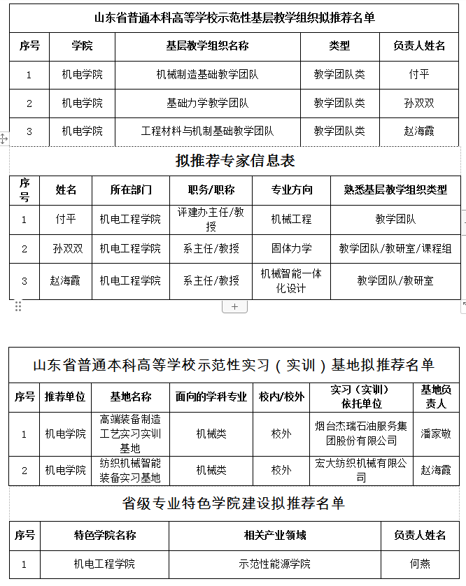 依据学校《关于开展省级未来技术学院、专业特色学院、示范性基层教学组织、实验教学示范中心、虚拟仿真实验教学示范中心、示范性实习(实训)基地、“111”计划建设申报的通知》,学院组织符合条件的教师申报,经学院初审,现拟推荐以下项目类别和人员,进入学校评审环节,并进行公示。公示期三天(2023年12月4日-12月6日),如有异议,请在公示期内向探花直播 教学办反映。