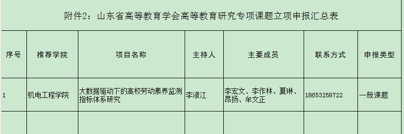 依据学校《关于开展2023年山东省高等教育学会高等教育研究专项课题申报工作的通知》学院组织符合条件的教师申报,共有1位教师提交材料,现拟推荐以下项目进入学校评审环节,并进行公示。公示期三天(2024年1月12日-1月14日),如有异议,请在公示期内向探花直播 教学办反映。