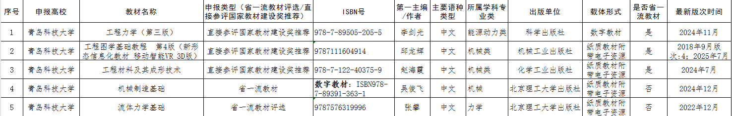 根据学校《关于开展第三批山东省高等教育一流教材和第二届全国教材建设奖评选推荐工作的通知》,经个人申报,学院初审,同意以下教材申报并推荐至学校,参加进一步遴选(排名不分先后),特此公示。。公示期三天(2025年7月3日-7月5日),如有异议,请在公示期内向探花直播 教学办反映