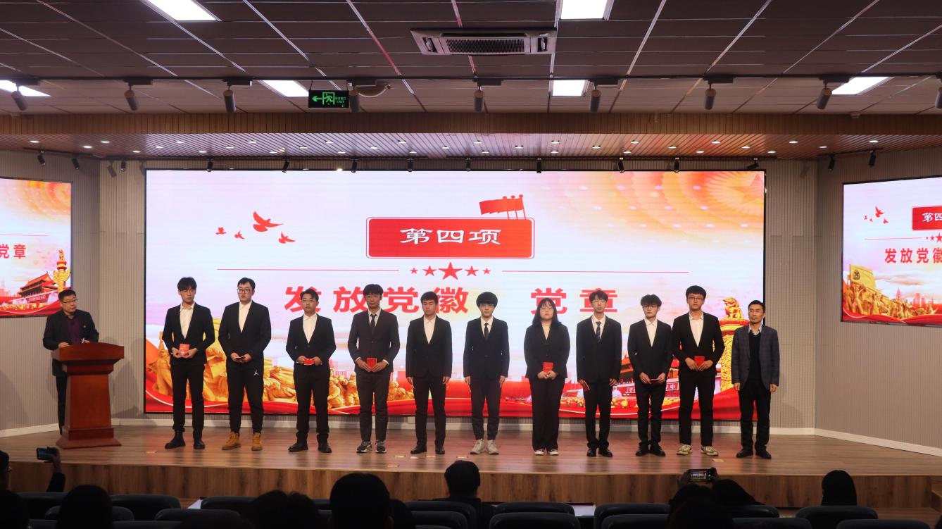 各支部书记为新发展党员颁发党徽、党章。