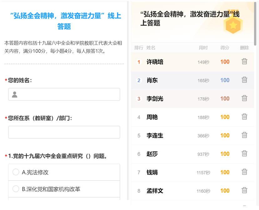 本次学习答题活动内容主要以《中共中央关于党的百年奋斗重大成就和历史经验的决议》和学院教职工代表大会相关应知应会内容为重点,答题以线上答题竞赛的形式进行,全体教职工认真学习、答题,取得了优异的成绩。