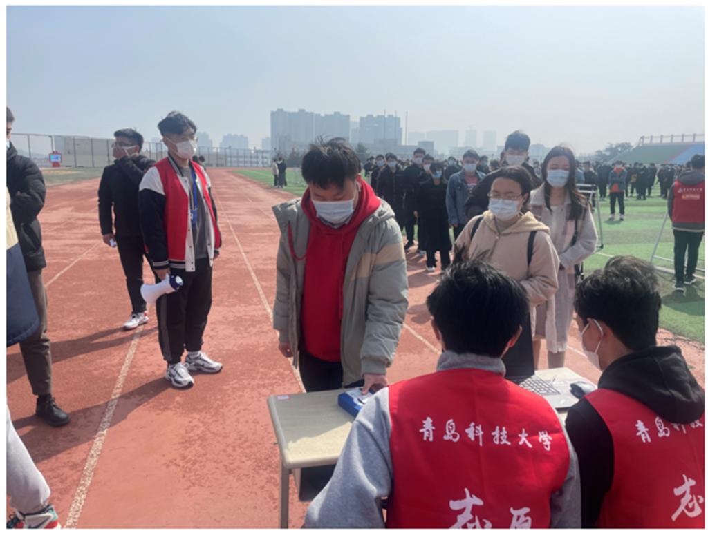 学生到达集合地点,系统登记、人员引导、列队待检等各个环节都高效有序。学生排队打卡的场面成为了一道崭新的风景线,信息统计志愿者张致远说:“通过使用打卡方式,我们现场组织更有条理了,系统登记以后当天到场人员情况一目了然。”
