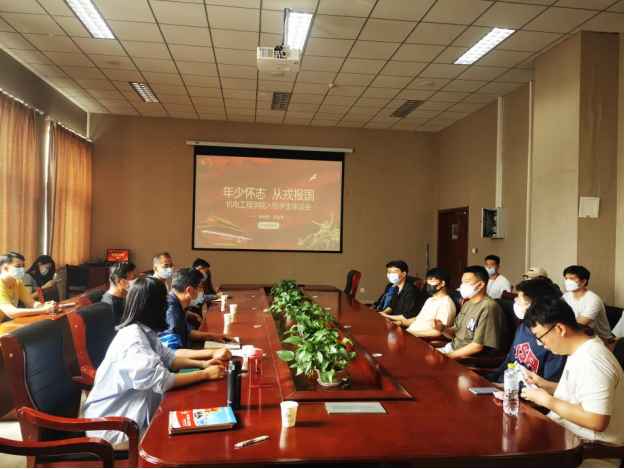 党委副书记兼副院长肖强老师、毕业生辅导员、退伍学生代表及2022年预征兵入伍毕业生,座谈会由团委书记王作辉老师主持。