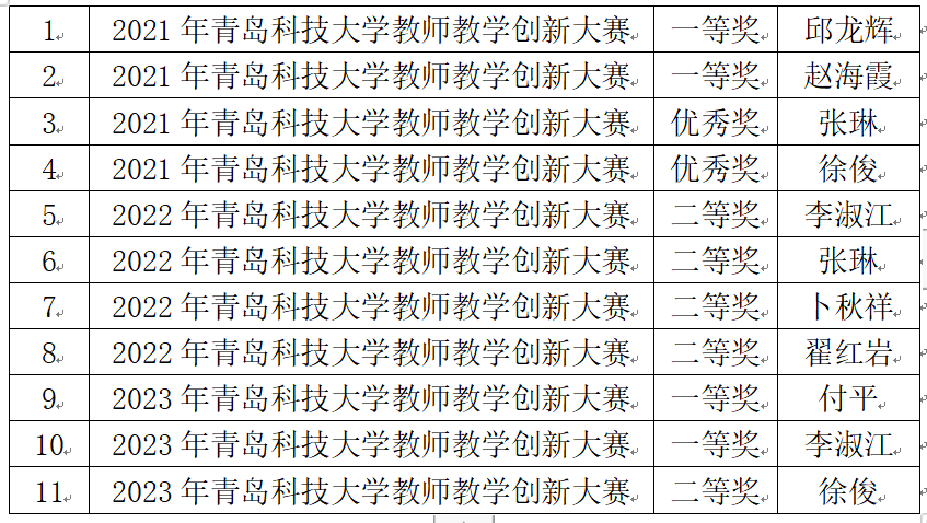 共有4名教师入围校赛(1人临时因病退赛)。经个人申报,学院审核、推荐,学校资格复审,校内外专家评审,本科教学工作委员会审议,最终确定全校33人获奖,其中一等奖7名,二等奖10名,三等奖16名,优秀组织奖5个。