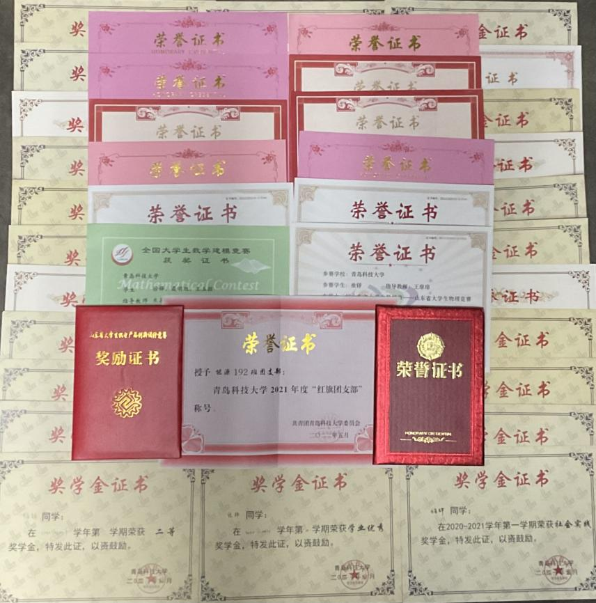 在四年的学习生涯中,他们始终发扬着“比、学、赶、帮、超”的学习风气,在学习上互帮互助,共同进步。班集体先后荣获先进班集体、红旗团支部、先进团支部等荣誉称号;班级30人中,1人获得“山东省政府奖学金”,5人获得“国家励志奖学金”“省政府励志奖学金”,1人获评“山东省优秀学生”荣誉称号,2人获评“山东省优秀毕业生”荣誉称号。