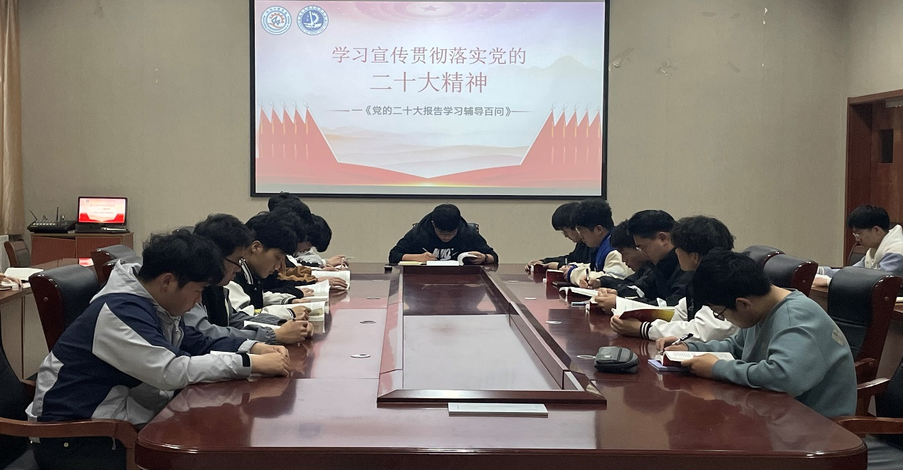 开展“话感悟”活动,组织学生骨干集体研读《党的二十大报告-学习辅导百问》等书籍。活动中,同学们认真阅读书籍,从中汲取宝贵的精神财富,共同学习党的二十大精神内涵。大家纷纷表示,将不忘初心、牢记使命,学习贯彻党的二十大精神,为实现中华民族伟大复兴中国梦贡献青春力量。