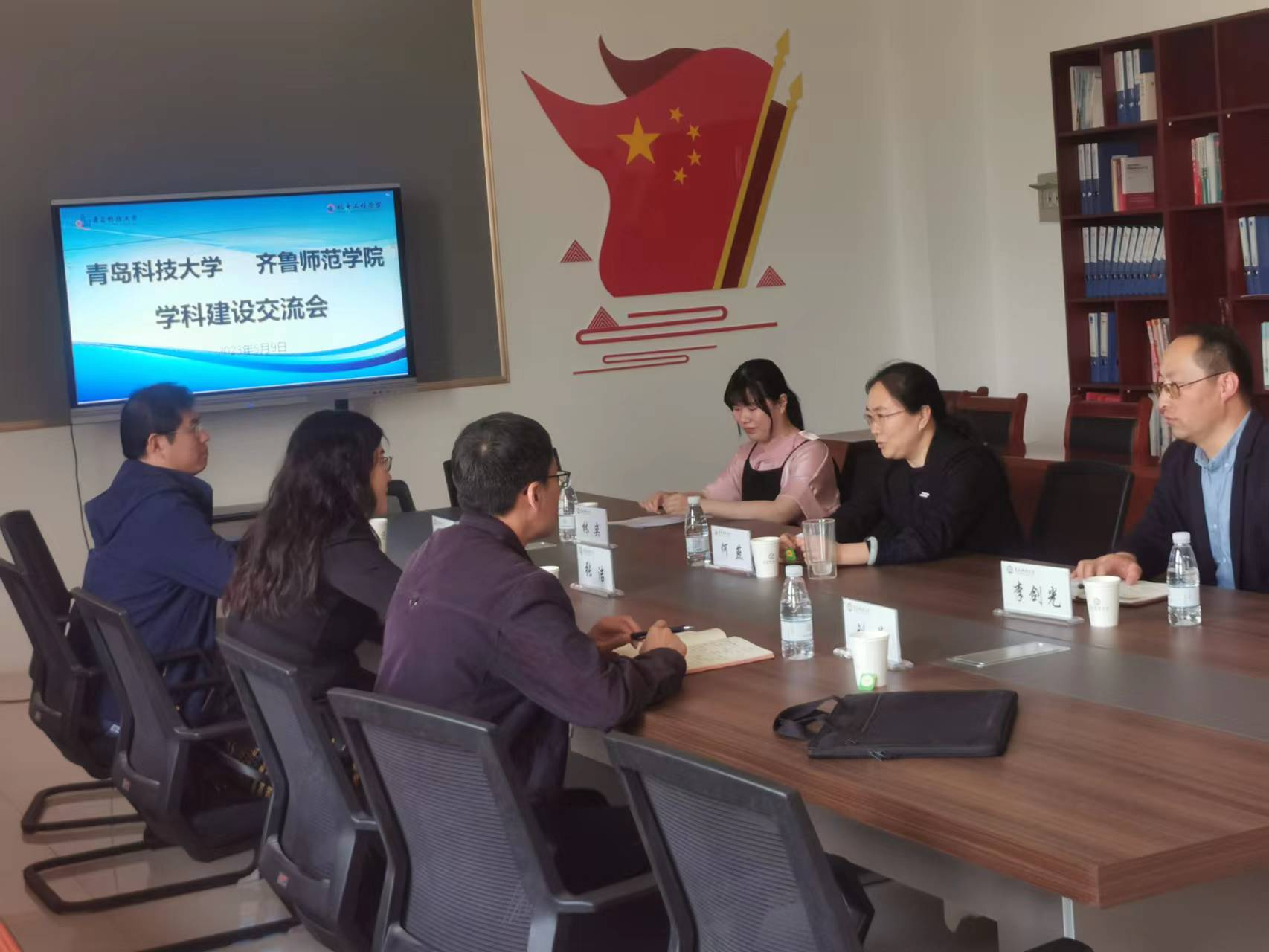 5月9日,齐鲁师范学院物理与电子工程学院院长张洁、副院长刘萌、教研室主任高刃奇一行来探花直播 进行学科专业建设交流,院长何燕、副院长李剑光、合作办学办公室负责人林奕参加。