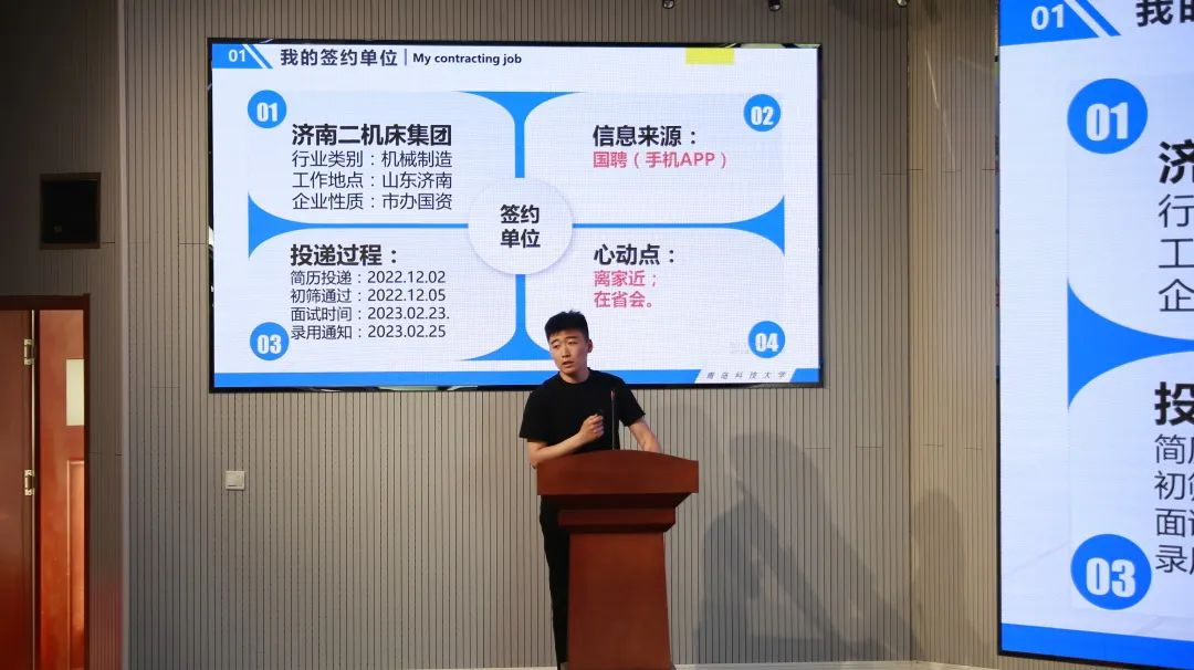 闫理智,已成功签约济南二机床集团有限公司。他以自己的求职经历为切入点,系统的讲解了如何做一篇优秀的简历,并建议同学们在求职的过程中重视对求职时间节点的合理规划以抓住更多的机遇。