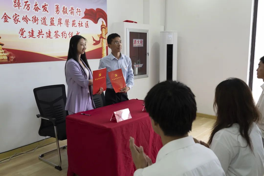 会上,学院与蓝岸馨苑社区举行了党建共建签约仪式,肖强与彭晓就党员教育、社会实践、志愿服务、文体活动等签订党建共建协议,并探讨制定了党建共建“三张清单”。王娟娟与彭晓共同为探花直播