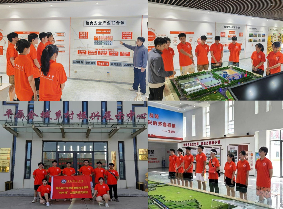 7月14日,调研团来到平原全域乡村振兴展示中心参观,该展示中心包含乡村振兴齐鲁样板省级(桃园)示范区、粮食安全产业联合体等多个智慧展厅。讲解员依次向队员们介绍了“吨半粮”政策的引进,“吨半粮”粮食安全产业联合体的构建,联合各大农业高校新兴科技助农的情况等。在讲解员的讲解过程中,团队成员通过仔细聆听、积极询问,更加深入地了解“吨半粮”具体政策方针,扎实实施乡村振兴战略,打造乡村振兴的齐鲁样板。