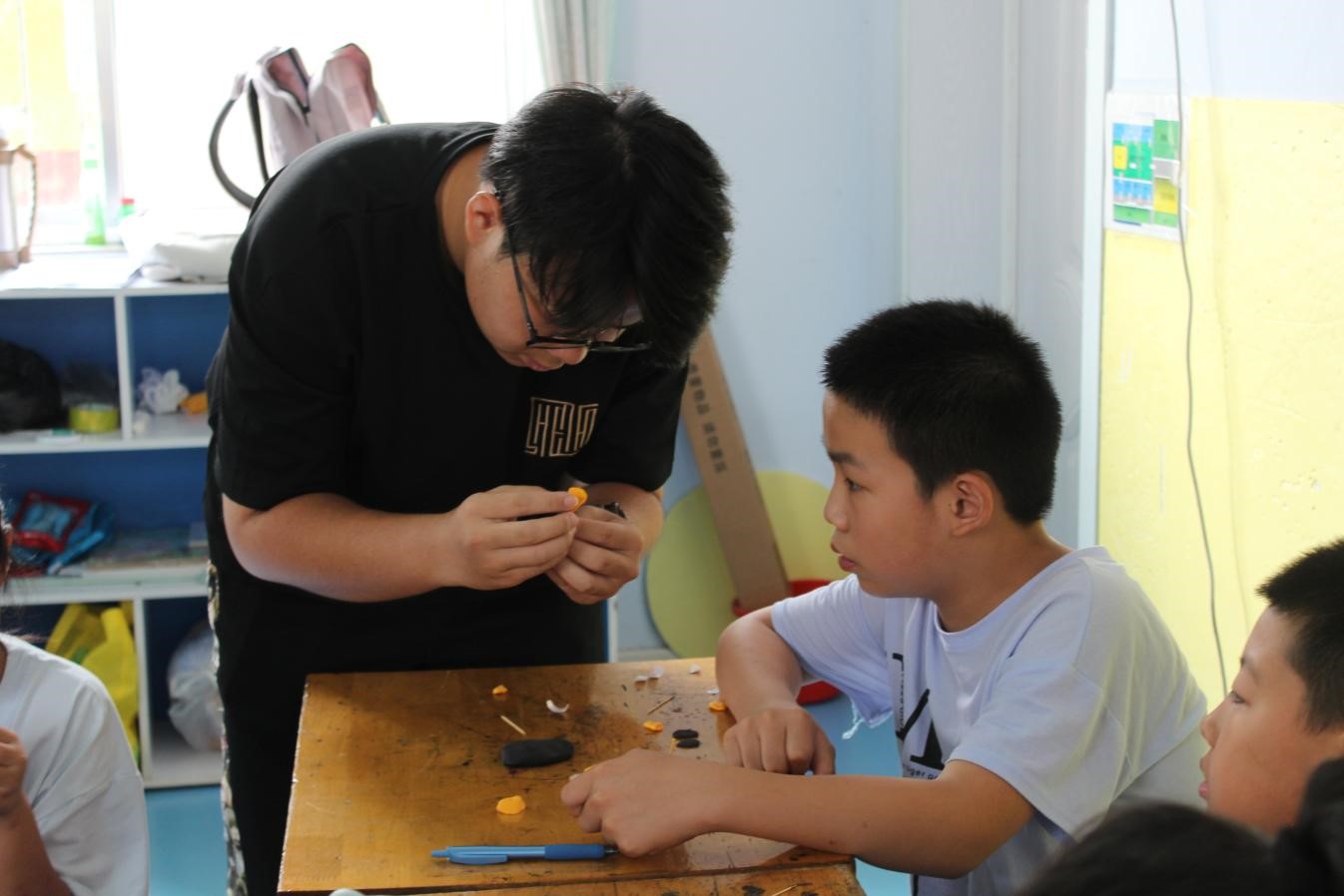 调研团成员刘满仓为孩子们带来“手工制作”专题课堂。刘老师传授学生各种手工技巧和培养他们的创造力。通过讲授手工课,他帮助学生们发展了他们的手工能力和艺术品味,同时也增强了他们的想象力和团队合作精神。