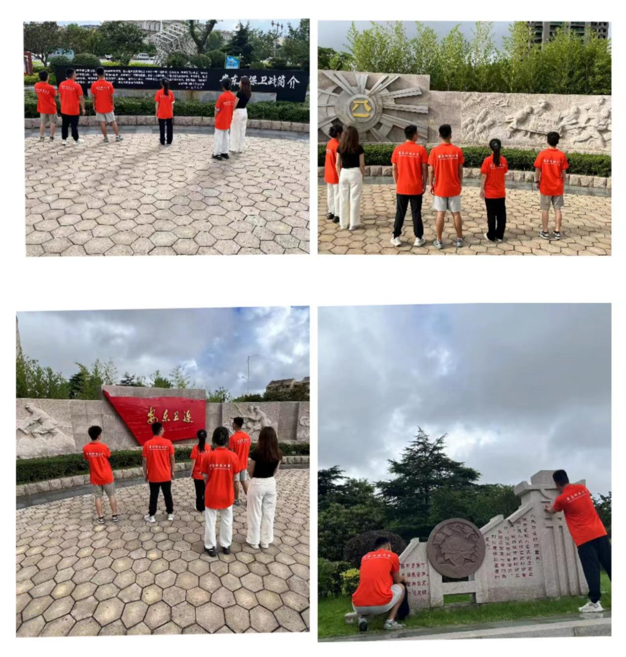 7月27日,团队成员们来到日照市岚山区安东卫保卫战遗址公园进行研学。1945年5月1日,由青岛增援日照的日伪军1000多人沿青(岛)海(州)公路南犯。4日拂晓,敌人以强击手段侵占安东卫,并开始修堡筑垒,安设据点,妄图控制海岸与沿海交通。7日,滨海军区23团2连在岚山区安东卫街道小李家村与日寇激战。面对数倍于己的日伪军,2连官兵英勇顽强,与敌激战3昼夜,始终坚守阵地。连队指导员钟家全在战斗中4次负伤不下火线,壮烈牺牲,后被追认为“战斗英雄”。战斗结束后,2连被滨海军区授予“安东卫连”光荣称号,获“英勇果断”锦旗一面。解放战争时期,“安东卫连”先后参加了柳条沟战斗、平津战役等,荣获“顽强制敌”光荣称号。新中国成立后,连队参加抗美援朝战争,被志愿军总部授予“攻守兼备一等功臣连”光荣称号。