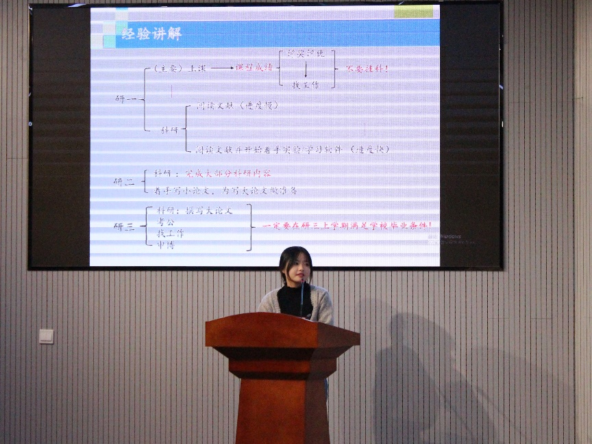 吴翰硕士向同学们分享了他在科研方面关于文献查阅方法、文献管理软件使用、文献阅读经验以及实用科研软件等方面的心得体会。同时,他还结合最近的求职经历,总结了用人单位看中的要点,为同学们未来的职业发展计划提供一定的参考。