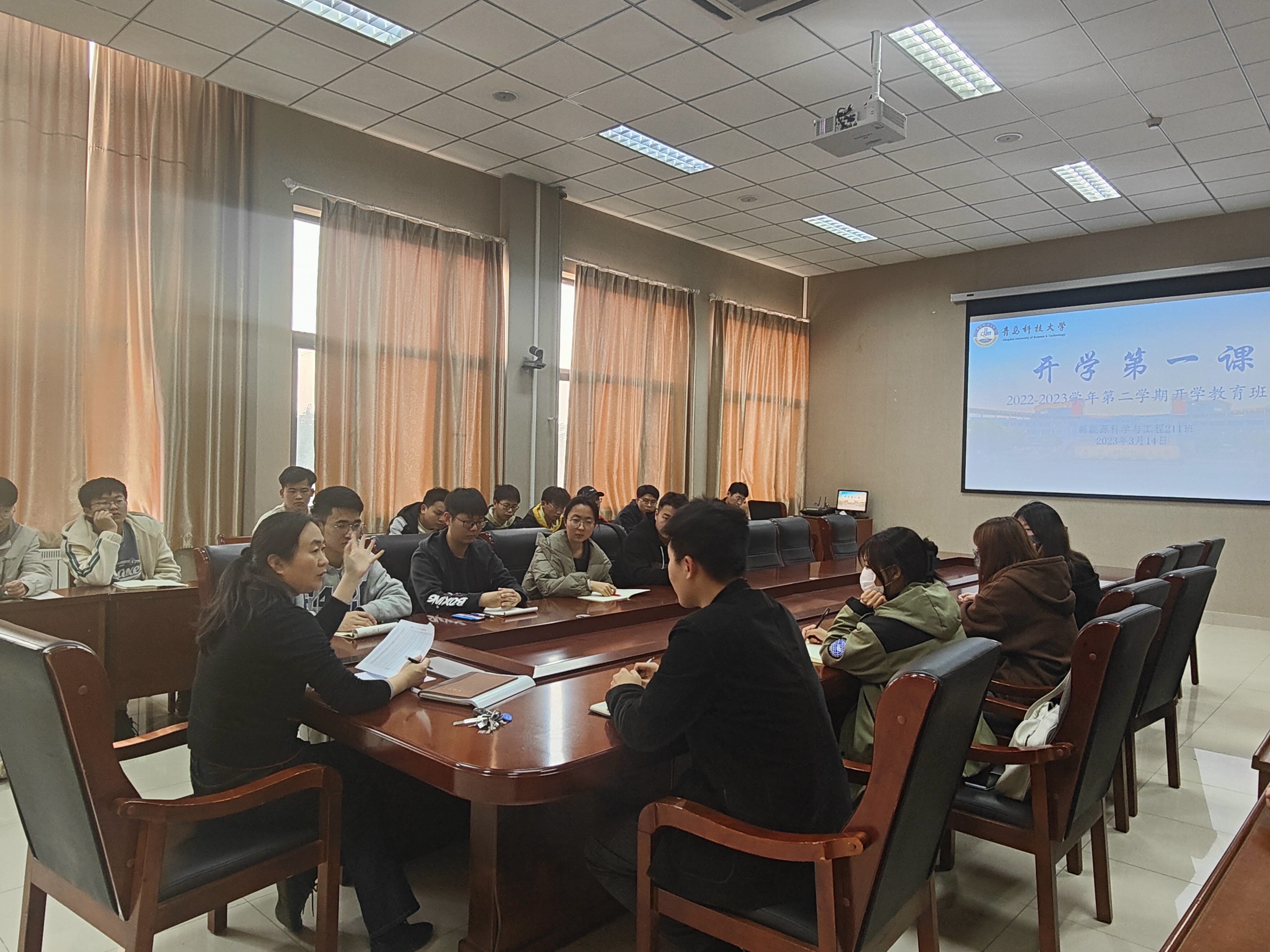 院长何燕作为新能源211班讲授“凝心聚力二十大,青春绽放心向党”为主题的第一课。