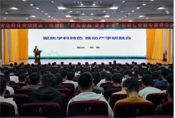 发展史,她谈到,学院始终坚持服务地方经济发展的发展理念,不断深化产教融合的办学特色,帮助毕业生深切感受到学院厚重的历史底蕴。接着,向同学们展示了学院“废橡胶废塑料绿色循环利用技术及装备”等10余项研发团队及其产学研合作成果,分享了山东大展纳米材料有限公司和青岛德固特节能装备股份有限公司与青科大探花直播