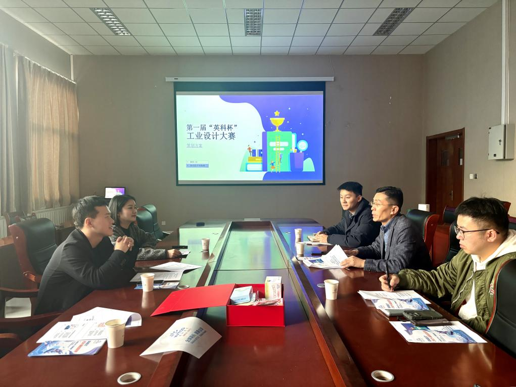 在学院楼518召开第一届“英科杯”工业设计大赛交流会。英科医疗淄博基地人力资源部招聘经理杨修明、市场部宣传部主管毕鑫悦、人力资源部招聘专员边文轩、学院党委副书记兼副院长肖强、工业设计系教师刘婷婷、毕业生辅导员胡福超、管羽参加。