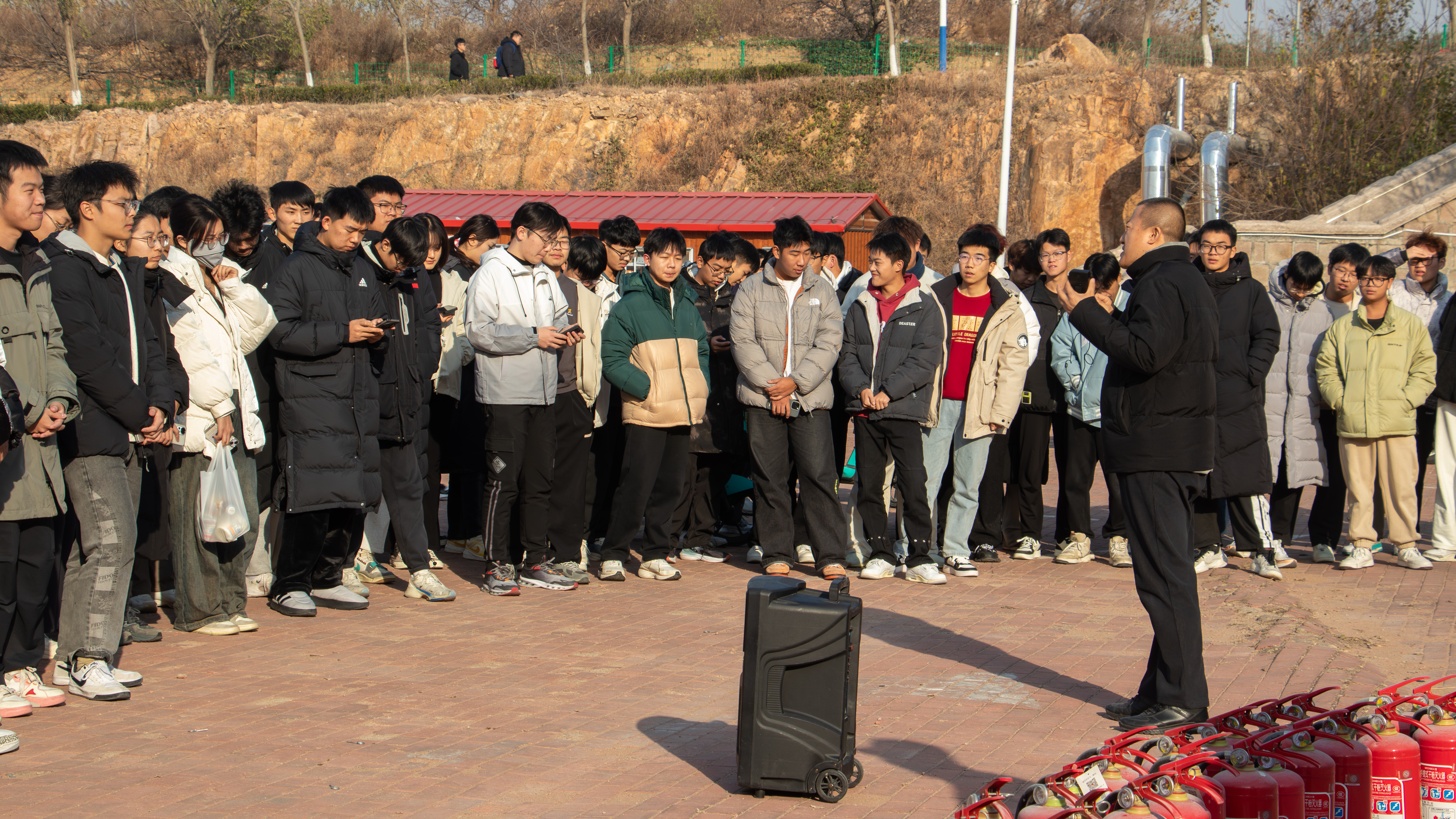 学校安管处消防科赵淑东、余全波老师先后为同学们开展消防疏散演练和灭火技能培训。在老师的专业指导下,同学们分组进行灭火实操,学习灭火器的正确使用步骤,切身掌握了基础的灭火技能,在实践中增强了防火灭火能力。