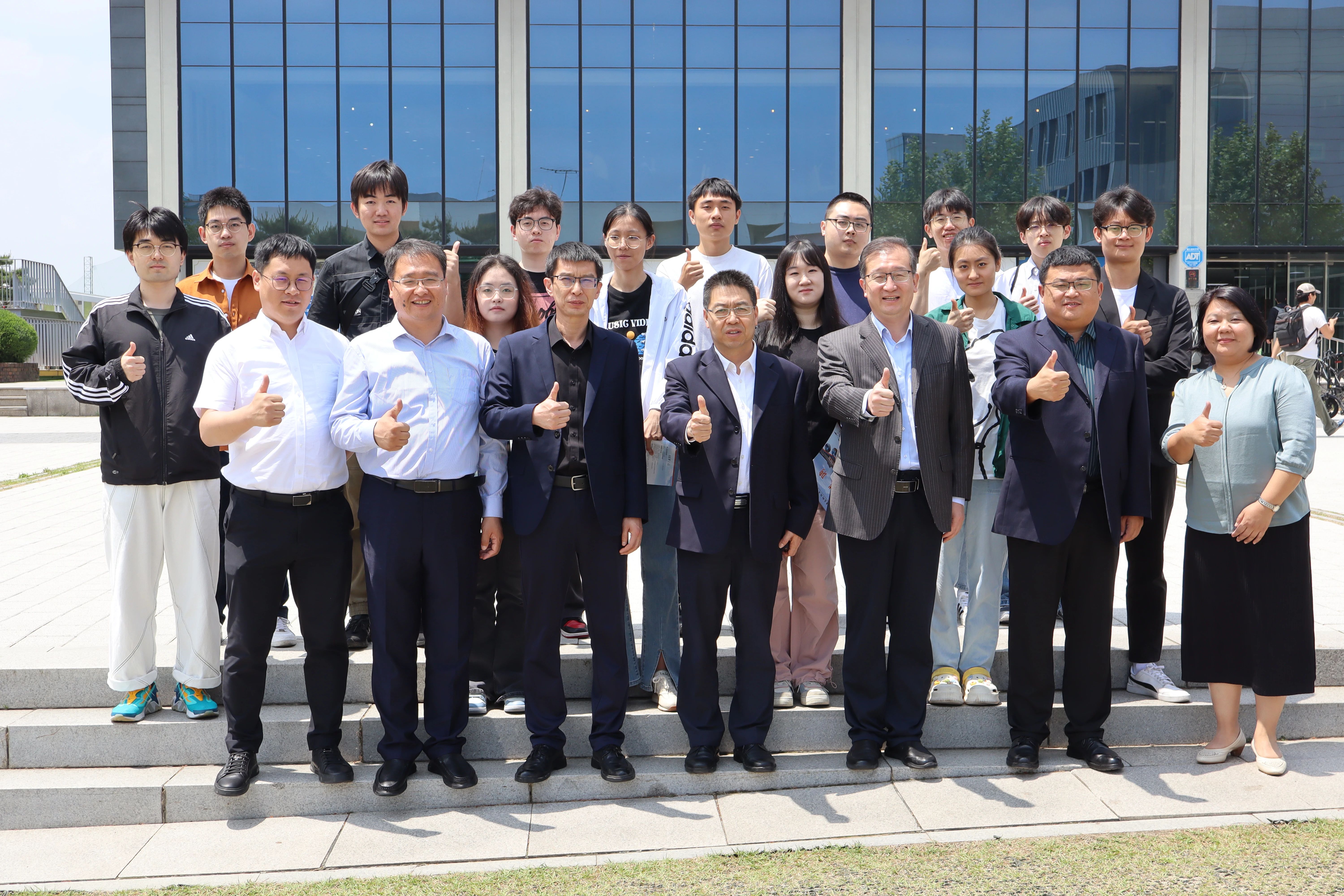 楼前合影留念