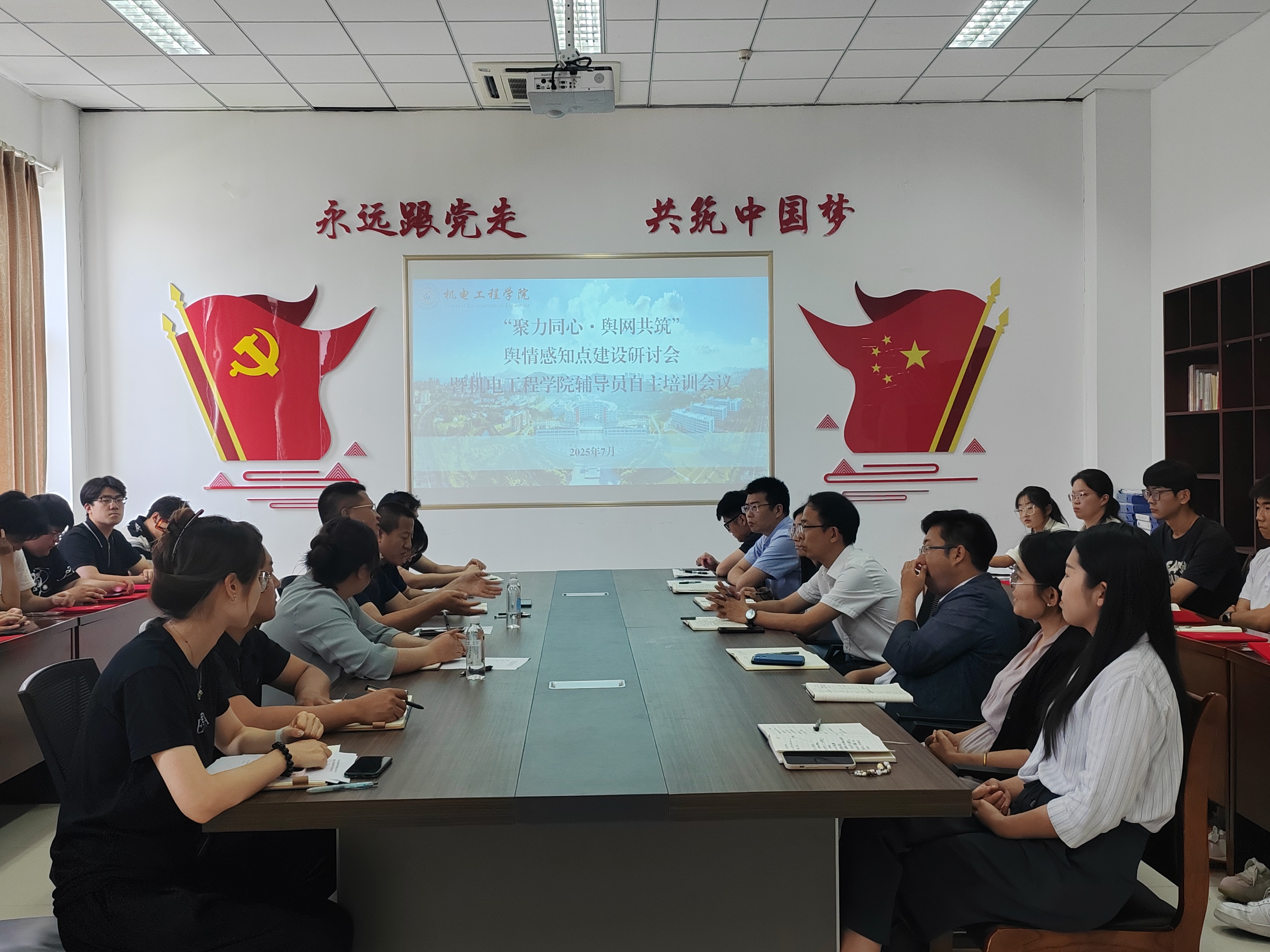 在D3-529会议室召开“聚力同心・舆网共筑”舆情感知点建设研讨会暨辅导员自主培训会。党委宣传部副部长贾可好、党委学生工作部教育管理科科长郭蒙蒙、学院党委副书记杨小明、专兼职辅导员以及舆情通讯员代表参加会议。会议由舆情感知点建设负责人周韫涵主持。