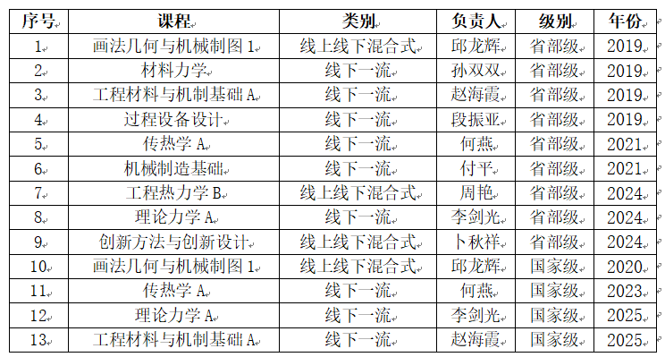 本次获批的国一流本科课程为《工程材料与机制基础A》(负责人:赵海霞,课程组成员:付平)和《理论力学A》(负责人:李剑光,课程组成员:朱惠华、秦楠、刘文秀、王永岩),均为线下一流课程。