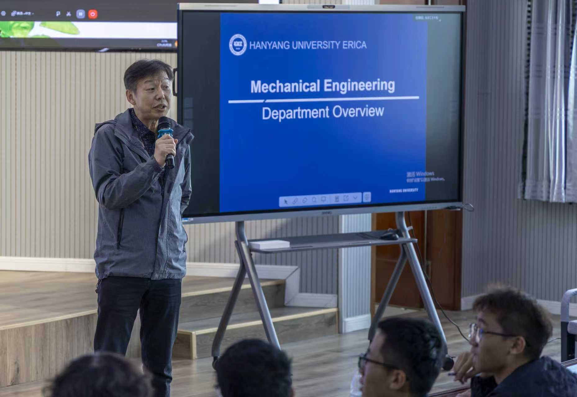 梁铉益重点解读了汉阳大学的核心竞争优势,通过分享留学生前辈的学业案例,结合全球机械工程领域的发展趋势,深入剖析了行业前沿方向。赵南圭从个人成长与当地的留学生活两方面进行指导。他鼓励同学们在异国求学中不畏艰难,主动了解并融入当地文化,积极借鉴留学生前辈的经验智慧。互动交流环节气氛热烈,学生们围绕留学期间的学习状况、语言能力标准、学分规则、毕业深造与就业前景等进行交流。