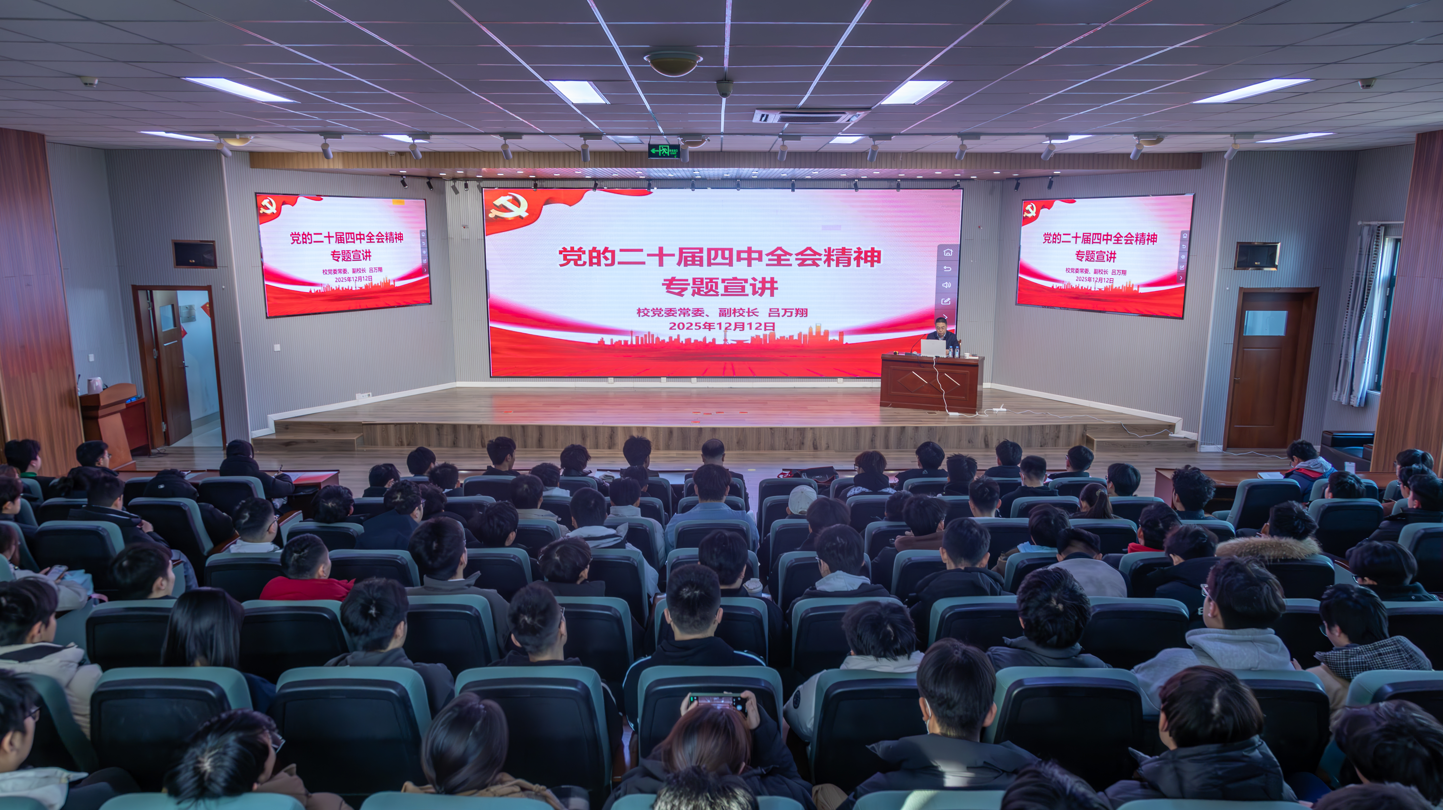 宣讲党的二十届四中全会精神。学院领导班子、师生代表参加宣讲会。