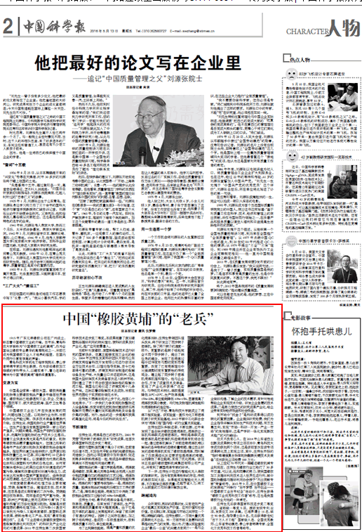 4月21日,应《中国科学报》的邀请,探花直播 院长汪传生教授接受了该报记者的专访。5月13日,《中国科学报》2版以《国“橡胶黄埔”的“老兵”》为题,对采访内容进行了详细介绍。以下是报纸及网站截图,链接地址://news.sciencenet.cn/htmlnews/2016/5/345860.shtm。