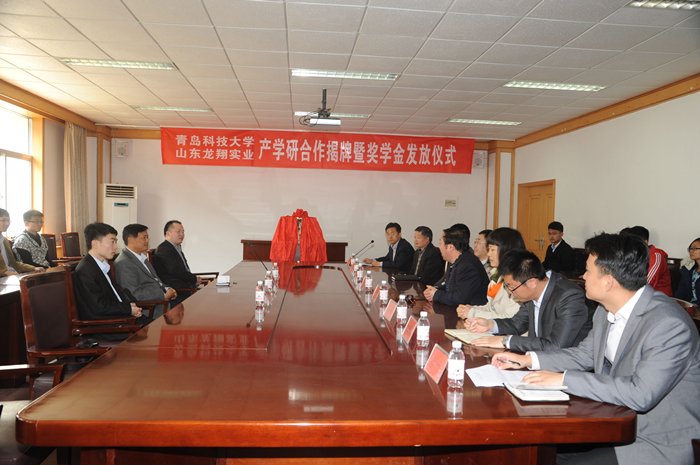会上,汪传生首先代表学院对陈树海局长一行的到来表示热烈欢迎,并指出组建联合研发中心是校企合作的重要模式,是增强自主创新能力、培养高层次人才的最佳载体,是实现科技创新、优势互补、资源共享、实现双赢的有效途径,对提高企业经济效益、提高学院的办学效益和社会效益,进一步提高人才培养的质量、提升办学水平有着重要的意义。其次,代表学院感谢山东龙翔实业有限公司设立“龙翔实业”奖学金,为学生的成长成才创造了良好的条件。