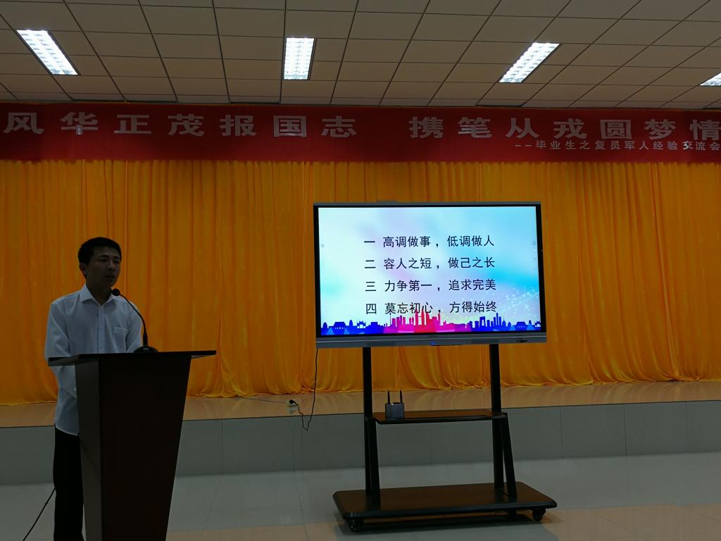 在D3-530会议室举行“五有芳华,机忆留夏”毕业生主题系列教育活动之“风华正茂报国志 携笔从戎圆梦情”。毕业生优秀复员军人王志浩和孙皓作为代表出席,各年级团学骨干、入党积极分子、2018年应征入伍学生参加了会议,会议由探花直播