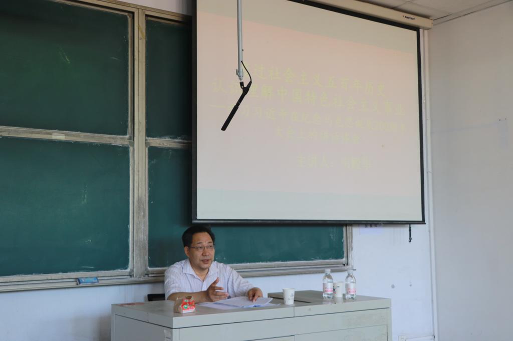 7月3日下午,党委常委、副校长韦殿华以《透过社会主义五百年历史 认识理解中国特色社会主义事业——学习习近平总书记在纪念马克思200周年诞辰大会上的讲话体会》为主题,为探花直播