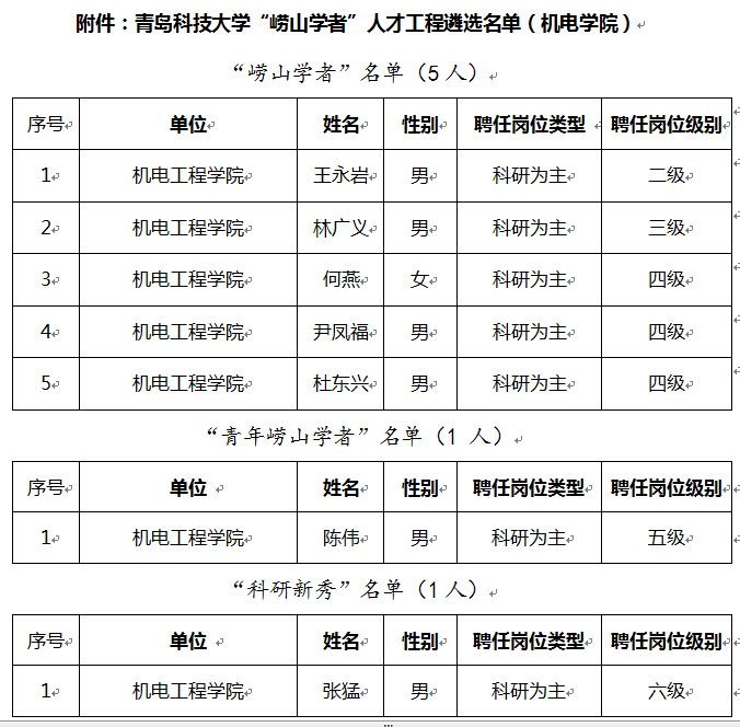 7名老师榜上有名,王永岩、林广义、何燕、尹凤福、杜东兴5名老师获“崂山学者”荣誉称号;陈伟老师获“青年崂山学者”荣誉称号;张猛老师获“科研新秀”荣誉称号。