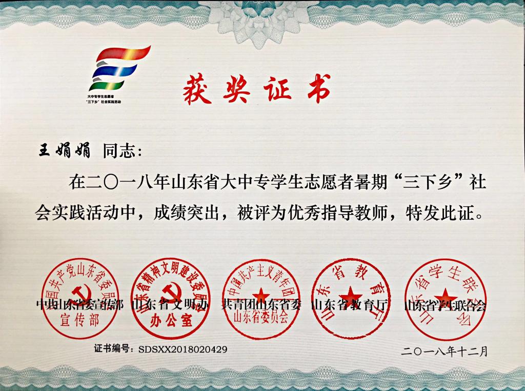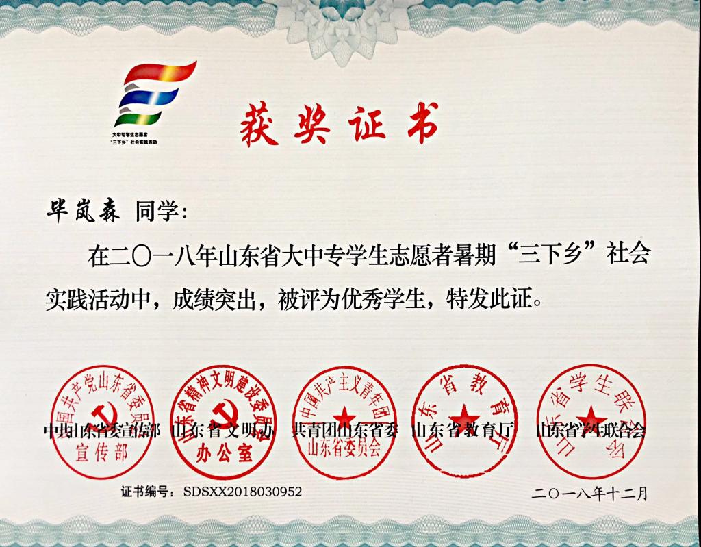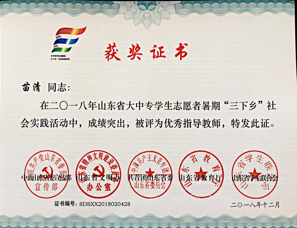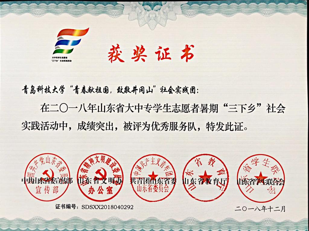 近日,2018年山东省大中专学生志愿者暑期文化科技卫生“三下乡”社会实践活动先进集体和先进个人的证书下发,探花直播