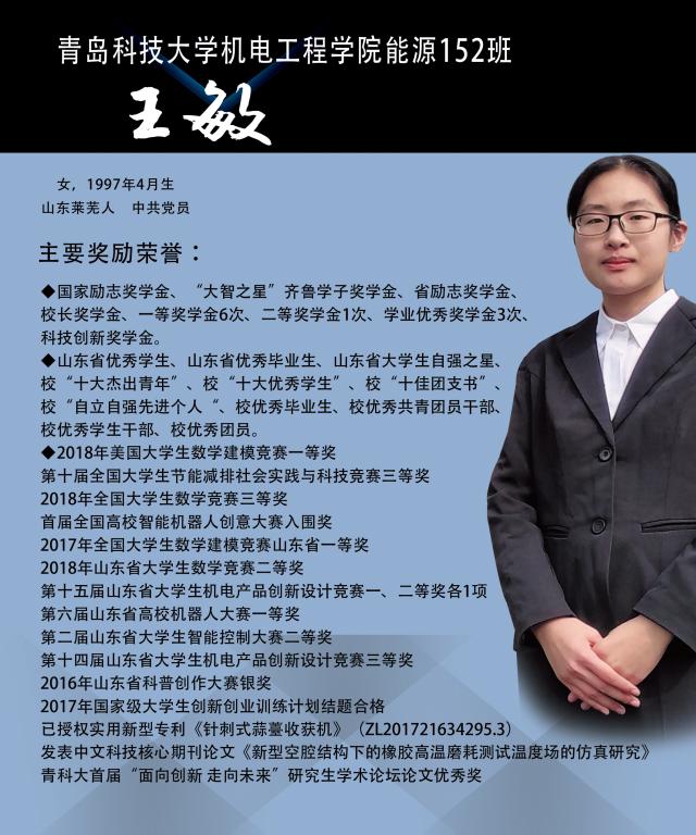 在我校第十二届“十大杰出青年”评选活动中,探花直播 能源152班王敏同学成功当选!