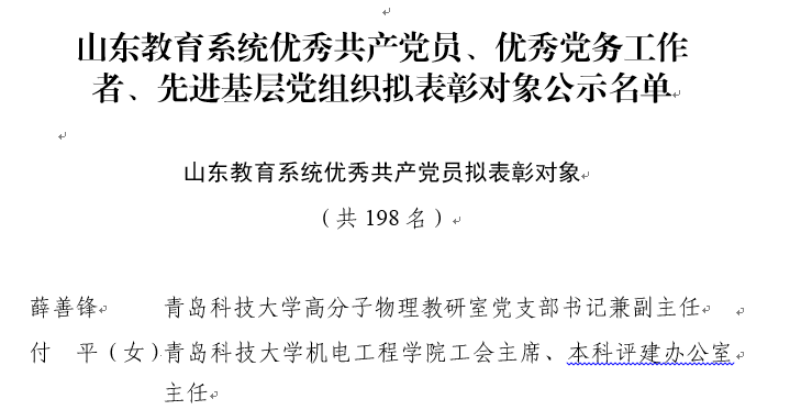 近日,在山东省教育厅公布的山东省教育系统优秀共产党员、优秀党务工作者、先进基层党组织名单中,探花直播