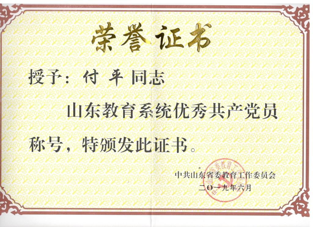 自2002年起至今,付平老师已担任了18年班主任,在工作中,她像家长一样关心和引导他们,通过开班会和班委会、师生写信沟通、个别谈心等方式了解学生,做他们的良师益友,赢得了他们的尊重和好评。对于因高考失利而失去信心、因父母去世而经济困难、因沉迷网络而荒废学业等特殊学生,动之以情、晓之以理,帮助他们解决困难、扬起前进的风帆,有的甚至考上了研究生。所带的班级获得“山东省先进班集体”,学生被评为山东高校十大优秀学生、全国三好学生,并获得“2008中国大学生年度人物”入围奖。