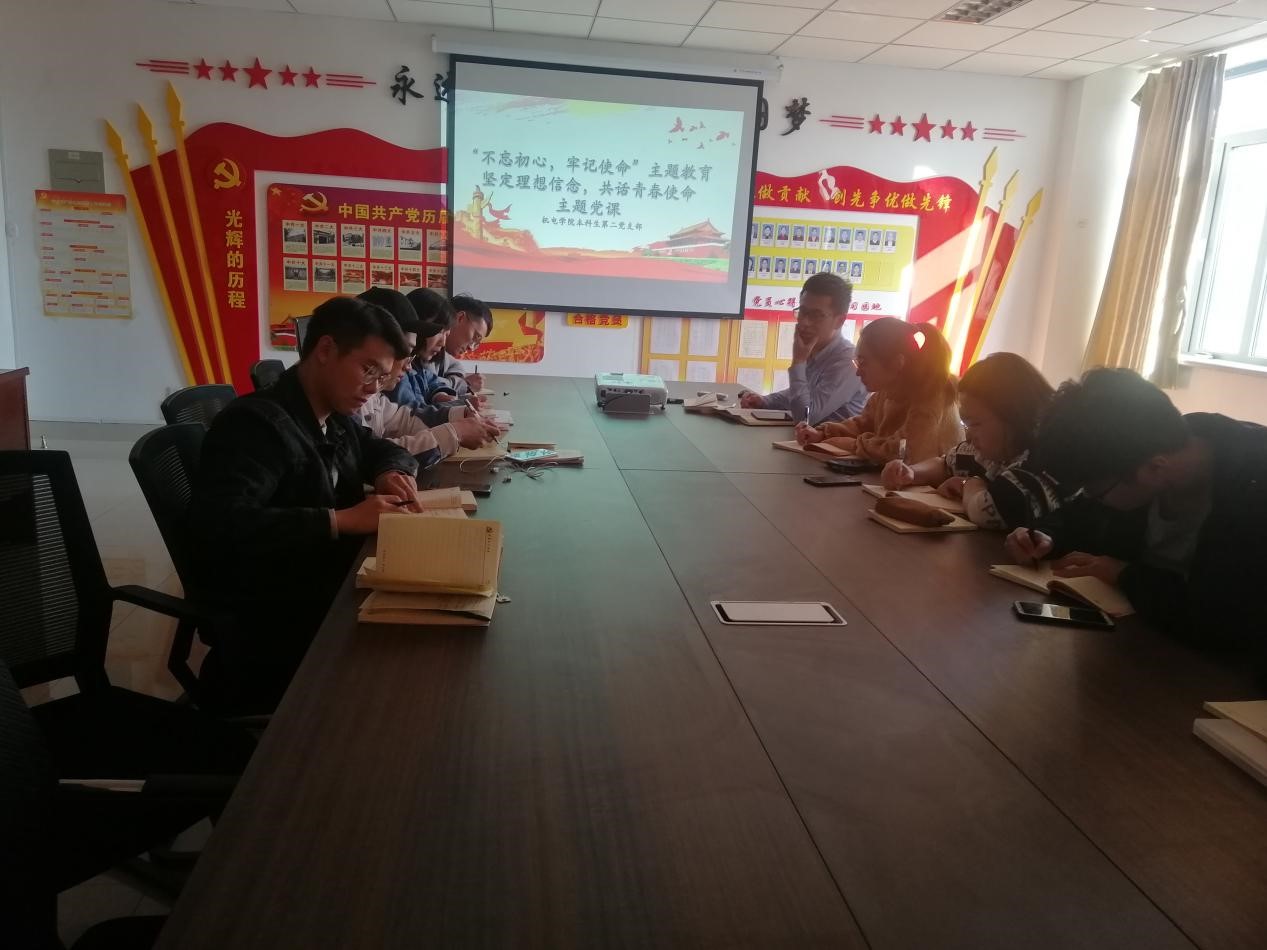 本科生第二党支部开展了“坚定理想信念,共话青春使命”主题党课,本次党课由党支部书记曲智强主持,党支部全体党员参加会议。