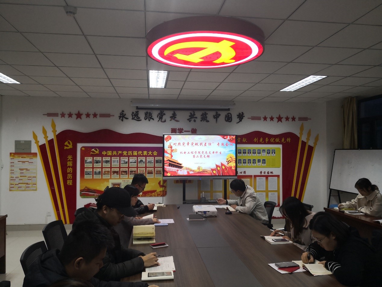 本科生第二党支部开展了“对照党章党规找差距”专题会议,本次会议由党支部书记曲智强主持。