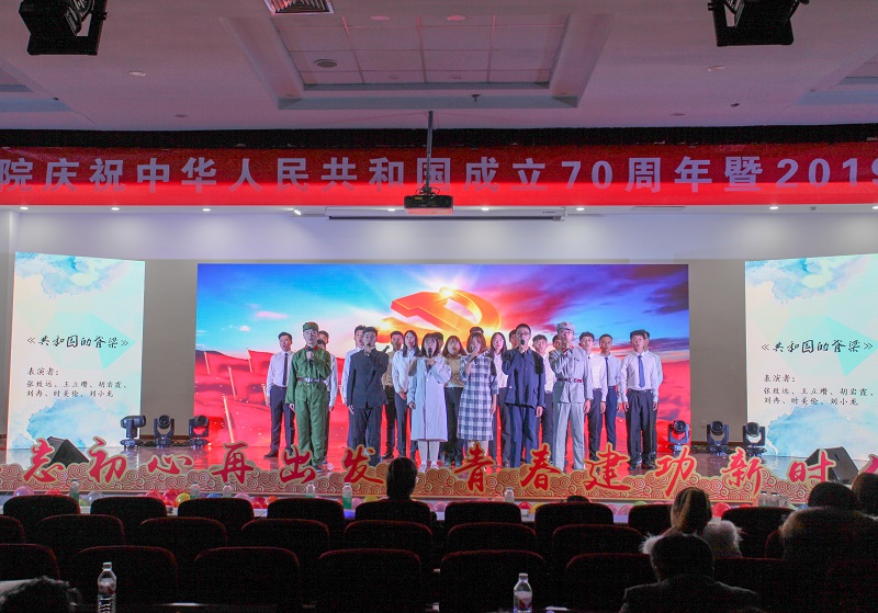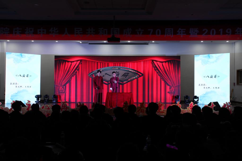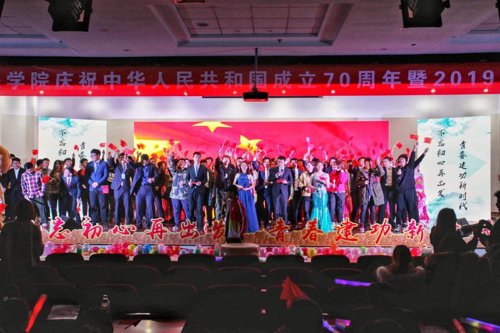 在崂山校区第二报告厅举办庆祝中华人民共和国成立70周年暨“不忘初心再出发,青春建功新时代”2019年迎新晚会。探花直播