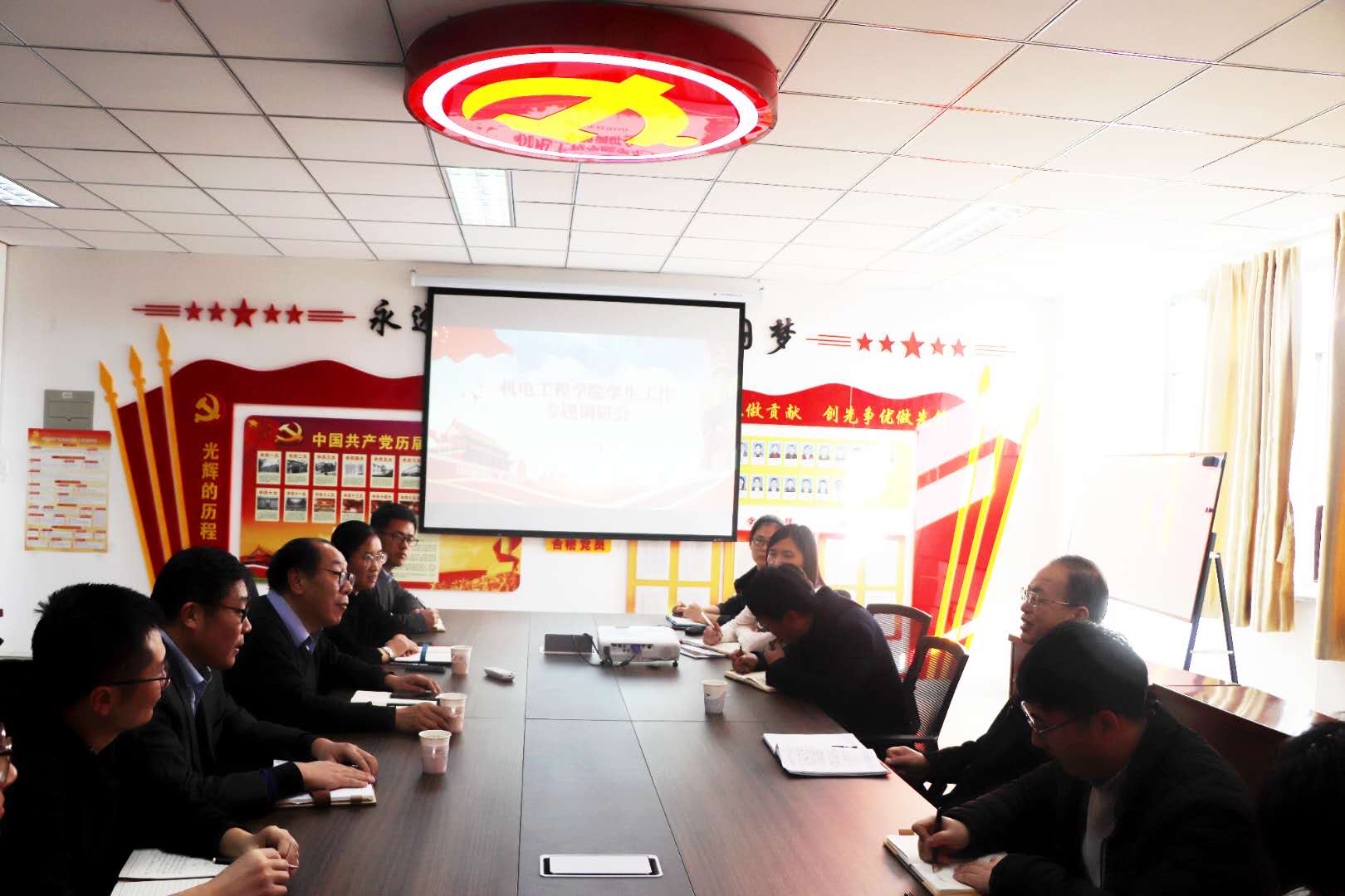 进行学生工作专题调研。学院党总支书记孙立军、党总支副书记兼副院长王伟、分团委书记兼学工办主任王作辉及全体专兼职辅导员参加了活动。