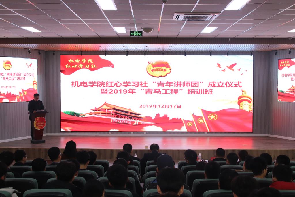 “青年讲师团”成立仪式暨2019年“青马工程”培训班。学院党总支书记孙立军、院长何燕、校党委宣传部副部长王建民、校学生处副处长贺炜、校团委副书记张玉、学院党总支副书记兼副院长王伟等参加了仪式。活动由学院分团委书记兼学工办主任王作辉主持。