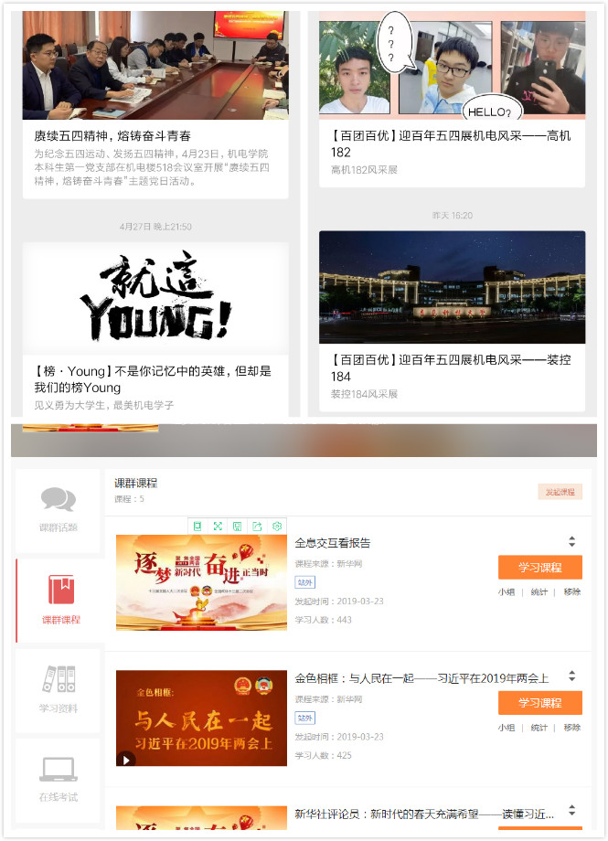 学院以“青年大学习”为主线,找准“六位一体”的思想原点,打好“组合拳”,采取多种形式帮助青年大学生校准人生航向。运用好“红旗”、“红心”学习社两大平台,借助“课程思政”与“六新书屋”,建设宿舍与课堂两大思想引领阵地。借助微信、QQ公众号等新媒体,开展线上+线下思政工作。涌现了“中国好人”王跃熙、大智之星王敏、刘冰桀。