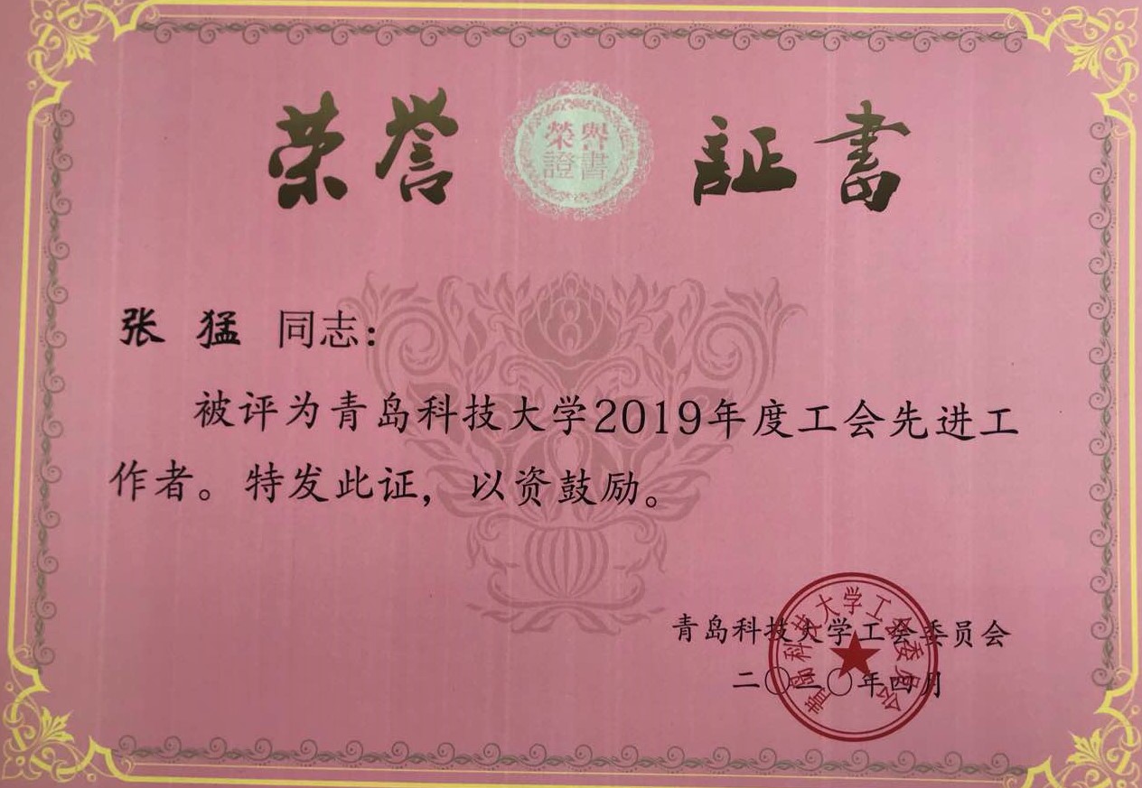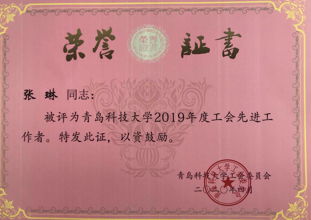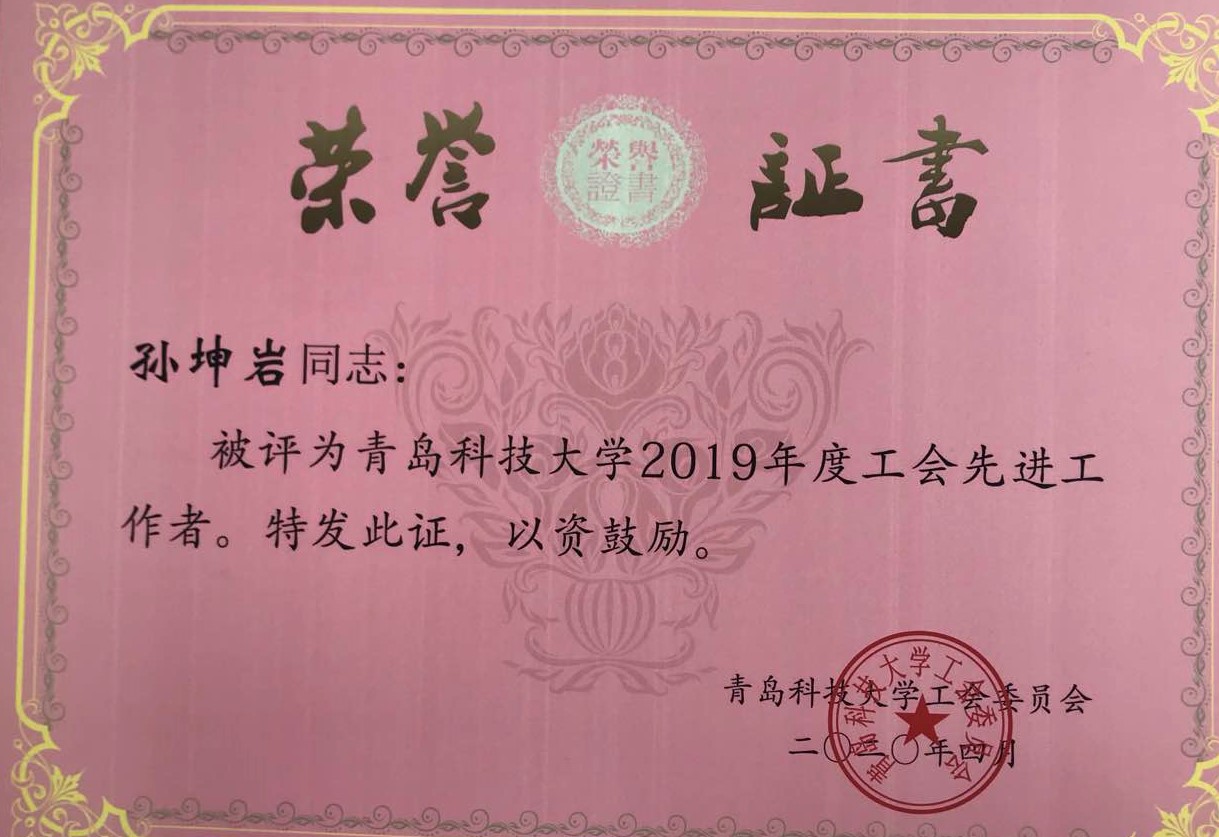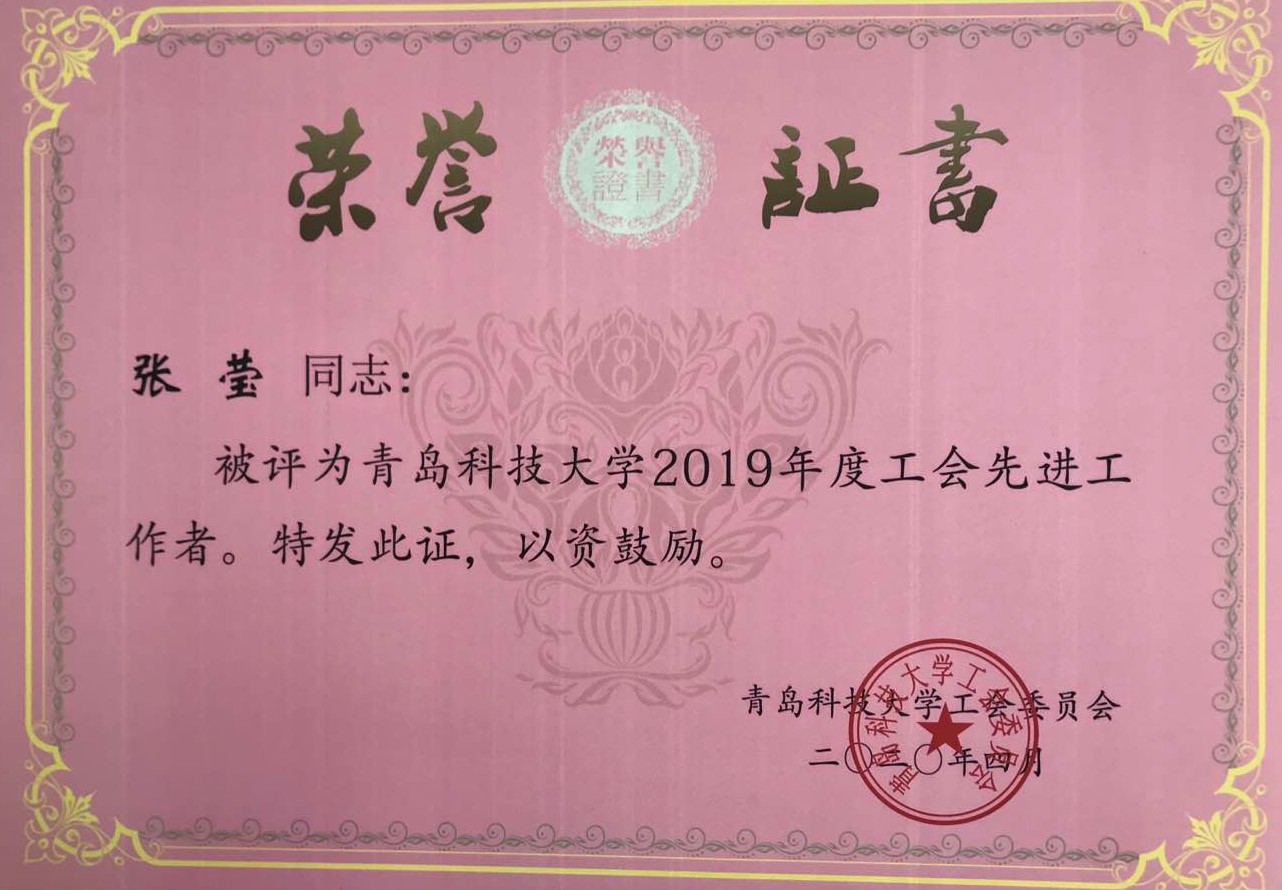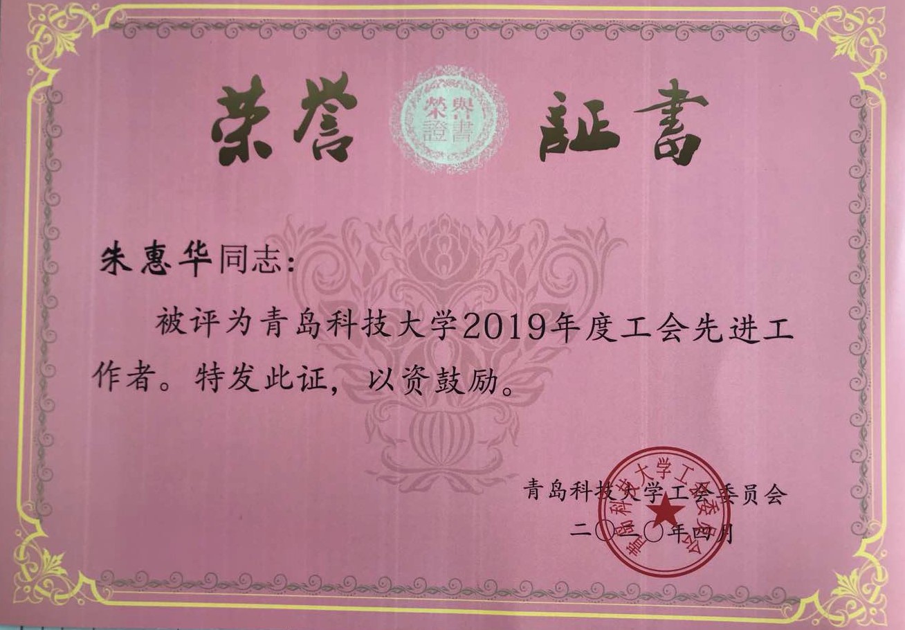 朱惠华、张莹、曹科伟、孙坤岩、白杨、陈东、张琳、张猛老师荣获“2019年度工会先进工作者”;