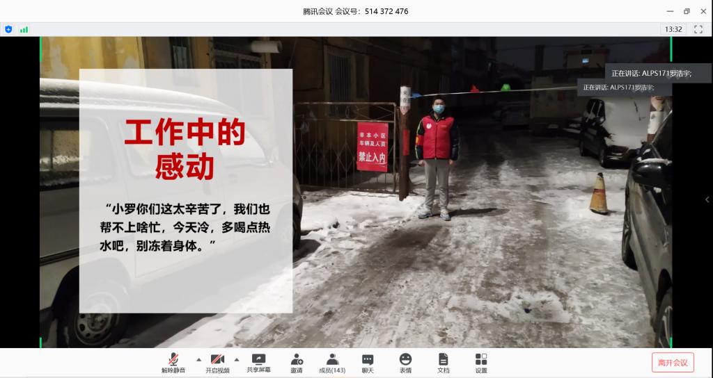 罗浩宇从一名学生党员和学生骨干的角度讲述了自己参与疫情志愿工作的所感所想。疫情暴发正值新年期间使得防疫工作更加紧张复杂,而他在社区居民的积极配合和温暖关怀下勇往直前,利用奖学金为工作人员和环卫工人送去温暖;作为探花直播