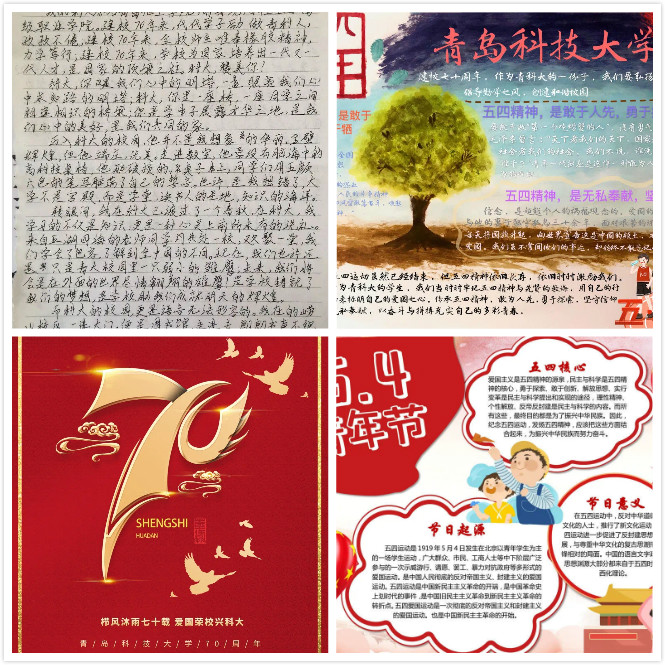 将纪念“五四运动”和我校七十周年校庆相结合,引导学生弘扬五四精神的时代内涵,书写科大的风雨历程,担当新时代青年的责任。学院开展了“情系科大创辉煌,争当先锋传薪火”线上作品征集活动,引导机电学子争当新时代接班人。