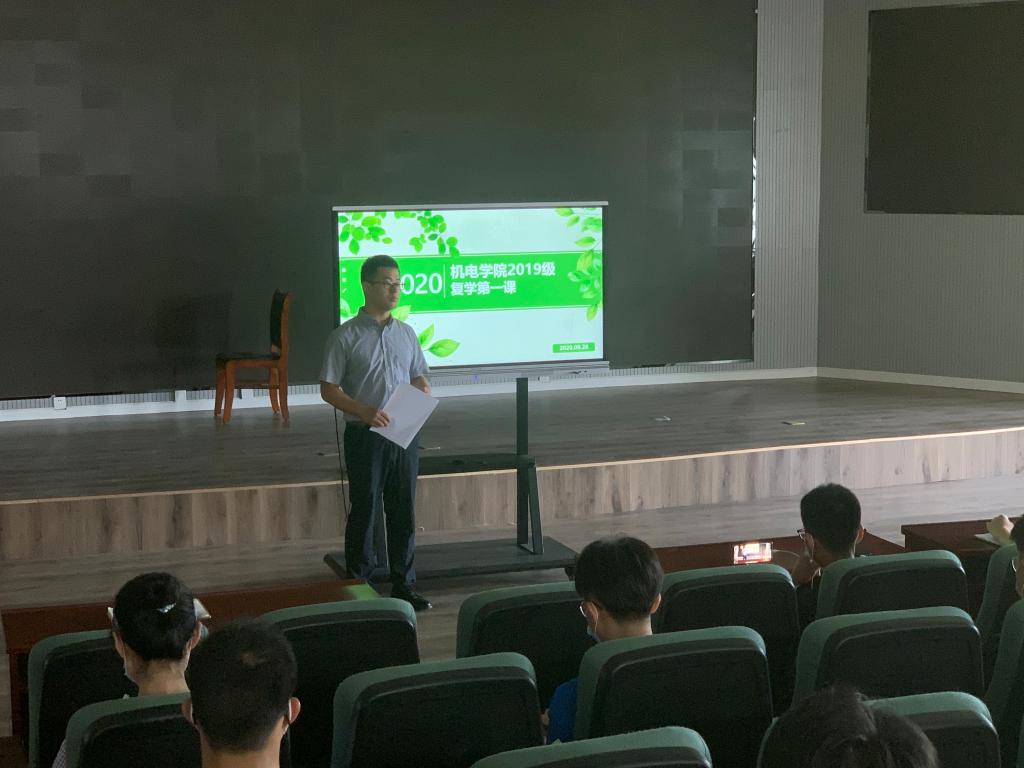 2019级辅导员在机电大楼530会议室召开“复学第一课”年级会议,采取网络直播的形式线上与线下同时进行。学院2019级全体学生参与会议,会议由曲智强、郭佩佩、邢坤主持。