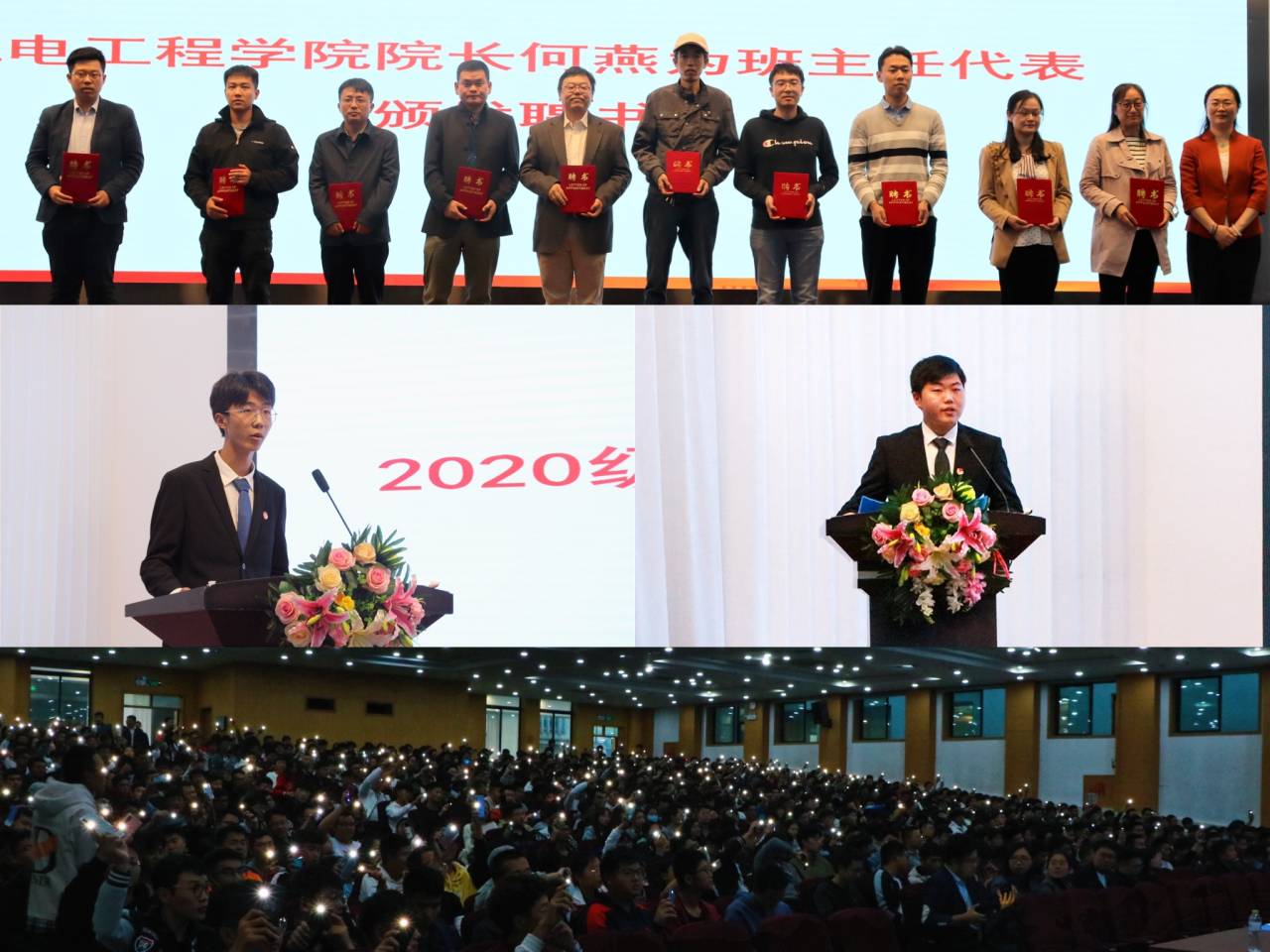 在第二报告厅举行“机扬梦想 电亮未来”2020级新生入学教育大会暨专业教育大会。学院院长何燕,党委书记孙立军,副院长张斌、杨化林、张卫锋、李剑光,党委副书记兼副院长肖强,学院团委书记兼学生工作办公室主任王作辉,班主任代表,学院全体专兼职辅导员,2020级全体新生参加会议。会议由肖强主持。