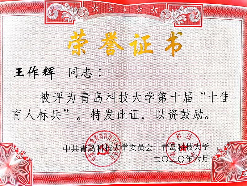 团委书记兼学办主任王作辉荣获“十佳育人标兵”称号。